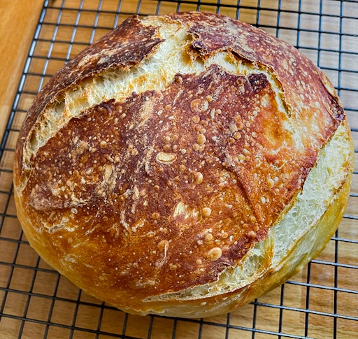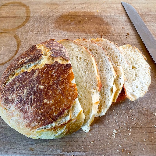 After I made this bread, I found out that its even lower in calorie than the bread machine one. The only down side is the waiting 18 hours. I have to admit that this one tastes better, looks better and I walked around like a proud peacock that I got a bread to rise. I sure had fun and made it my own, your turn.