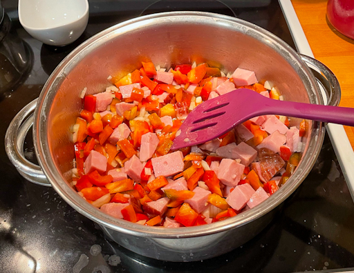 - Layer apples in the pan and sprinkle brown sugar mixture evenly over top.