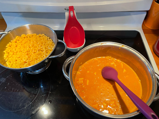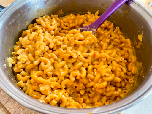 I calculated to make the same quantity which would serve six. However, I didn’t count the salad or veggie you should be having with this to make a balanced meal. Nor did I add any extra protein. Conclusion of the pricing was pretty simple. Cheapest was with Cheez Whiz, at 1.05 a plate, Velvetta at 1.10 and Kraft Dinner which I found expensive at 1.27 a plate. Kraft Dinner has more calories, more fat, more sugar, and less calcium and Vitamin A per serving. Mind you, it is much quicker and works well in a pinch. I have used it as side dish many times and will continue to do so.