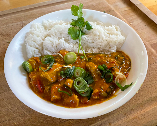 - Serve with basmati rice and topped with cilantro and a squeeze of lime.
